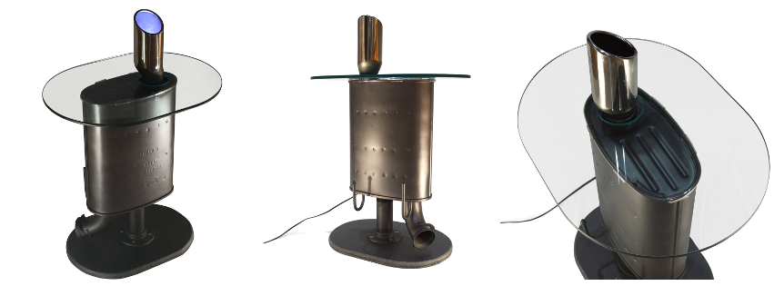 This was a project of mine to try and find a way to reduce, reuse, and recycle the mufflers from my Ford Mustang GT. Being a relatively young man at the time, I didn’t have much from a furniture perspective. Having seen a engine block coffee table and even a crankshaft side table on Pinterest, I was confident I could create something unique for my own home. Make sure to check out my blog post for my process of developing this one of a kind end table.