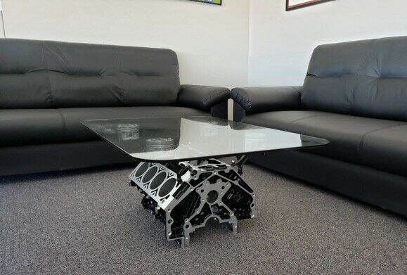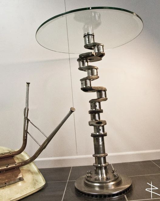 Having been pretty discouraged with my initial search for an end table, I decided to change up my search terms in Google to include things like “mechanical” or “recycled”. While there were only a few viable options, some of my favorites were the engine block coffee table and even crankshaft side table. The problem was that both required a large investment or having access to those specific components.